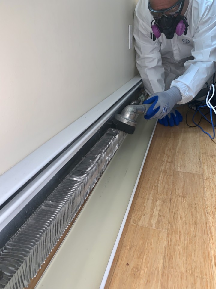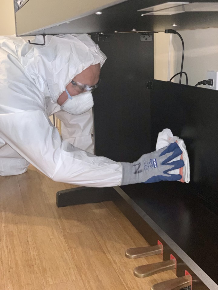 scrubbing, fogging, HEPA vacuuming and wiping all affected surfaces and items.